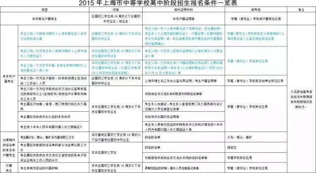 考生父母一方为在沪高校、科研机构博士后流动站(工作站)人员,考生为应届初三学生或18周岁以下本市往届初中毕业生,可在学籍学校或设站单位所在区县报名。